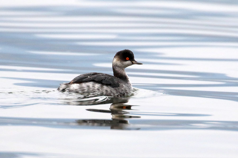 Krátce zajíždím k naprosto klidné hladině Mušovské zdrže a pak vyjíždím k Pastorkovu lomu nad Pernou. Zedníčka vidět není. Myslím, že letos tu ještě nebyl hlášený, což je překvapivé. Pak sjíždím k Novomlýnské zdrži, z několika míst prohlížím klidné zrcadlo její hladiny. Na vodě jsou vidět stovky hvízdáků, minimálně stovka hoholů, ještě více chocholaček a několik desítek roháčů. Nakonec se jdu projít po schodech u Strachotína. Až daleko za nejsevernějším cípem nádrže přistává do pole, nad kterým poletuji racci bouřní, raroh. Stativák ho krásně přiblíží. Podél břehu neúnavně loví potápka černokrká, u břehu se objevuje potáplice severní a z mlhy vystupují a střídavě se v ní zase ztrácejí kontury Pálavy. Je to nádherná podívaná.